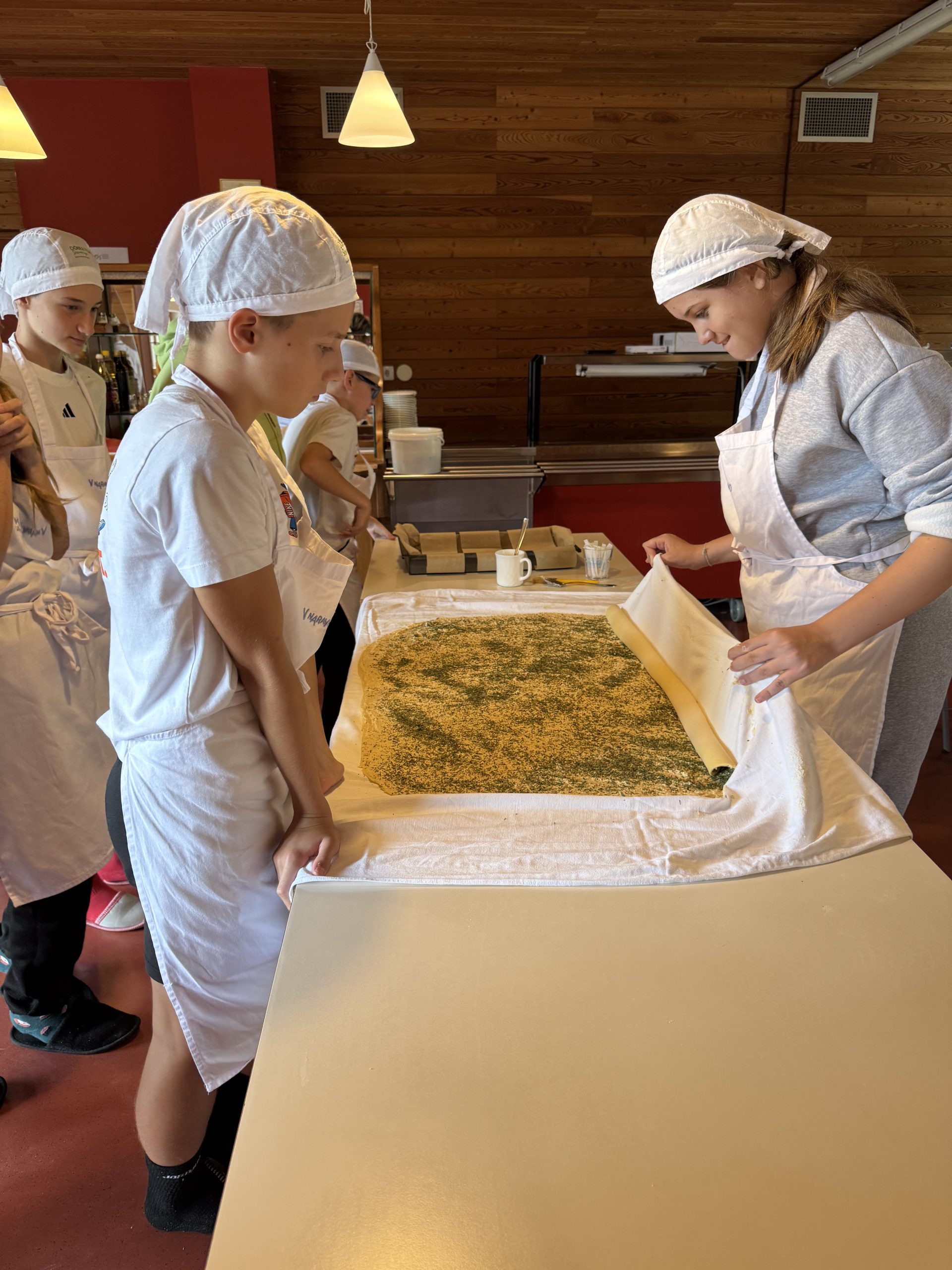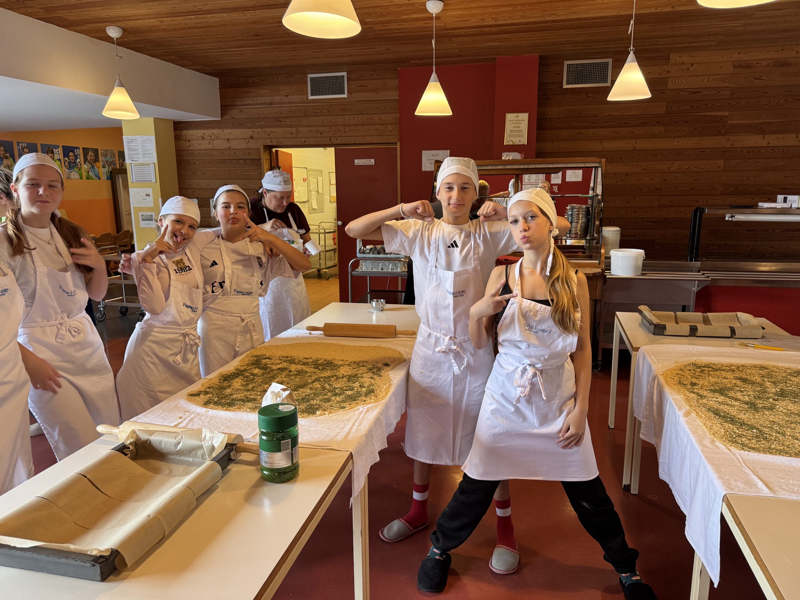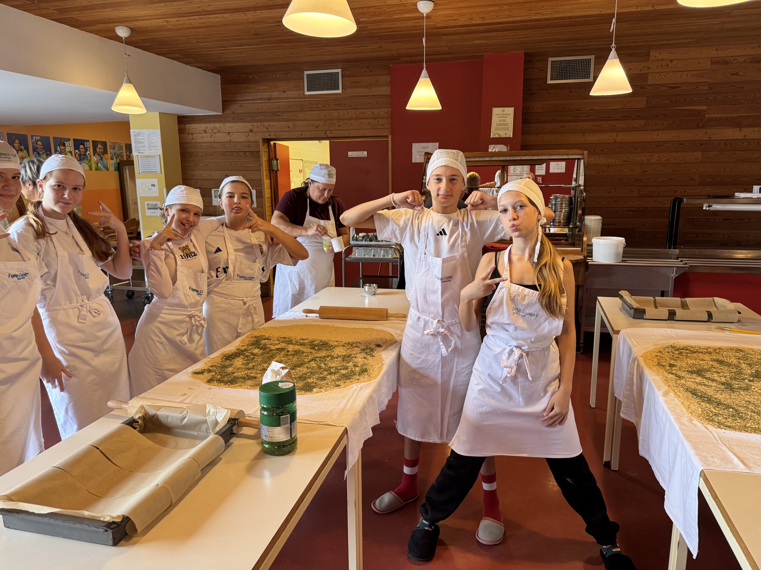 Naš zadnji dan v Planici smo preživeli prav posebno. Nekateri učenci so se še podali na kolesa, drugi pa so si nadeli predpasnike in postali pravi kuharski mojstri. V kuhinji so nastali dve tipični slovenski dobroti – dišeča jota in slastna pehtranova potica.