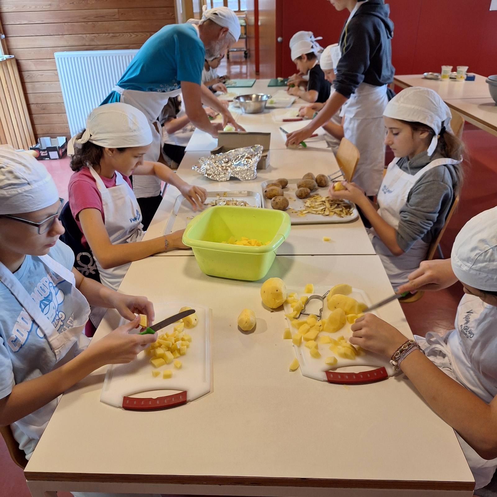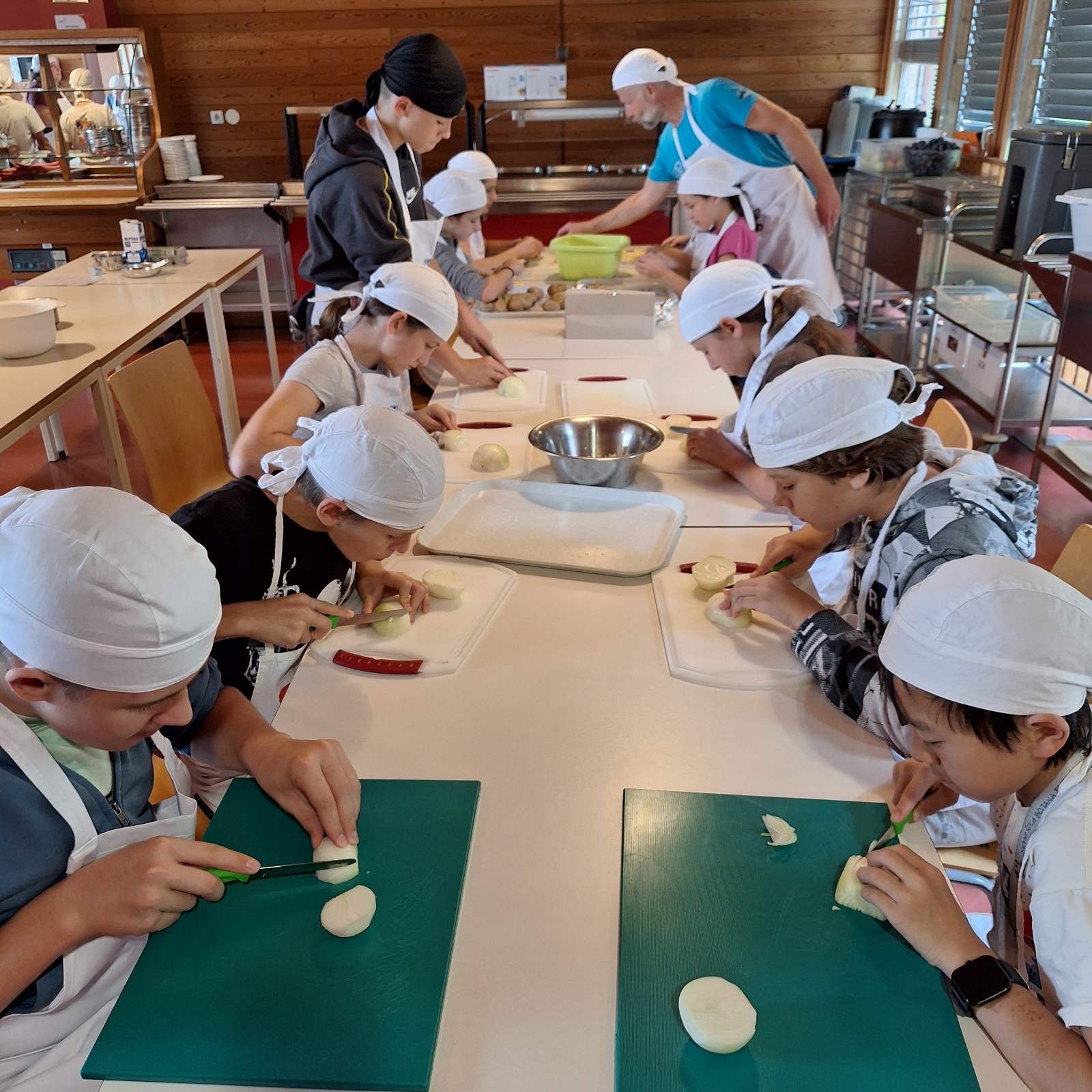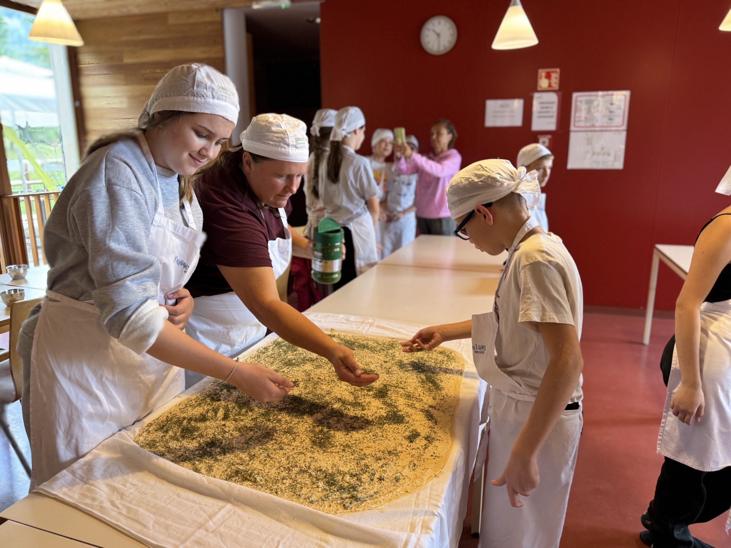 Naš zadnji dan v Planici smo preživeli prav posebno. Nekateri učenci so se še podali na kolesa, drugi pa so si nadeli predpasnike in postali pravi kuharski mojstri. V kuhinji so nastali dve tipični slovenski dobroti – dišeča jota in slastna pehtranova potica.