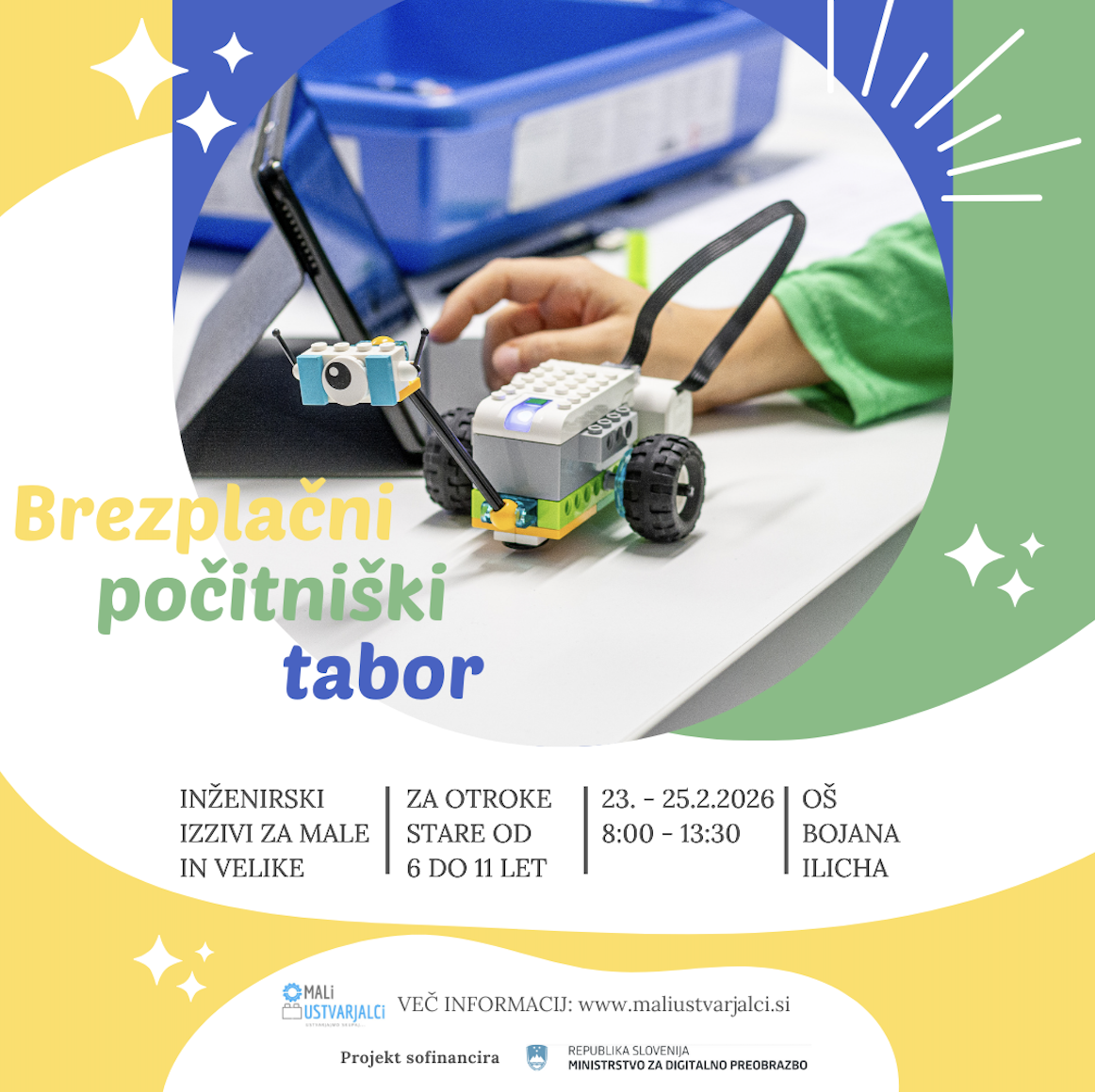 V času zimskih počitnic vabimo otroke, da se nam pridružijo na 3-dnevnem tečaju Lego robotike. Tečaj bo na sporedu 23., 24. in 25. februarja, od 8:00 – 13:30 (udeležba je obvezna vse tri dni). Tečaj bo potekal v prostorih OŠ Bojana Ilicha Maribor.