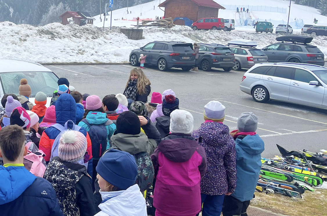 učenci so že na cilju, v idilični Ribnici na Pohorju.