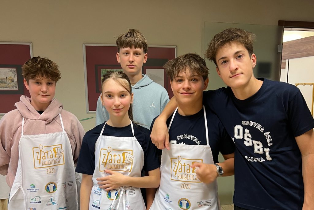 Ekipa mladih kuharjev: Niko Hercog, Zan Brlogar, Tristan Štromajer in Vid Podjavoršek iz 9. a ter Nuša Brlič iz 9. b so na regijskem tekmovanju “Zlata kuhalnica”, ki je 14. oktobra 2025 potekalo na Srednji šoli za gostinstvo in Turizem Maribor dosegli 2. mesto in s tem zlato priznanje!